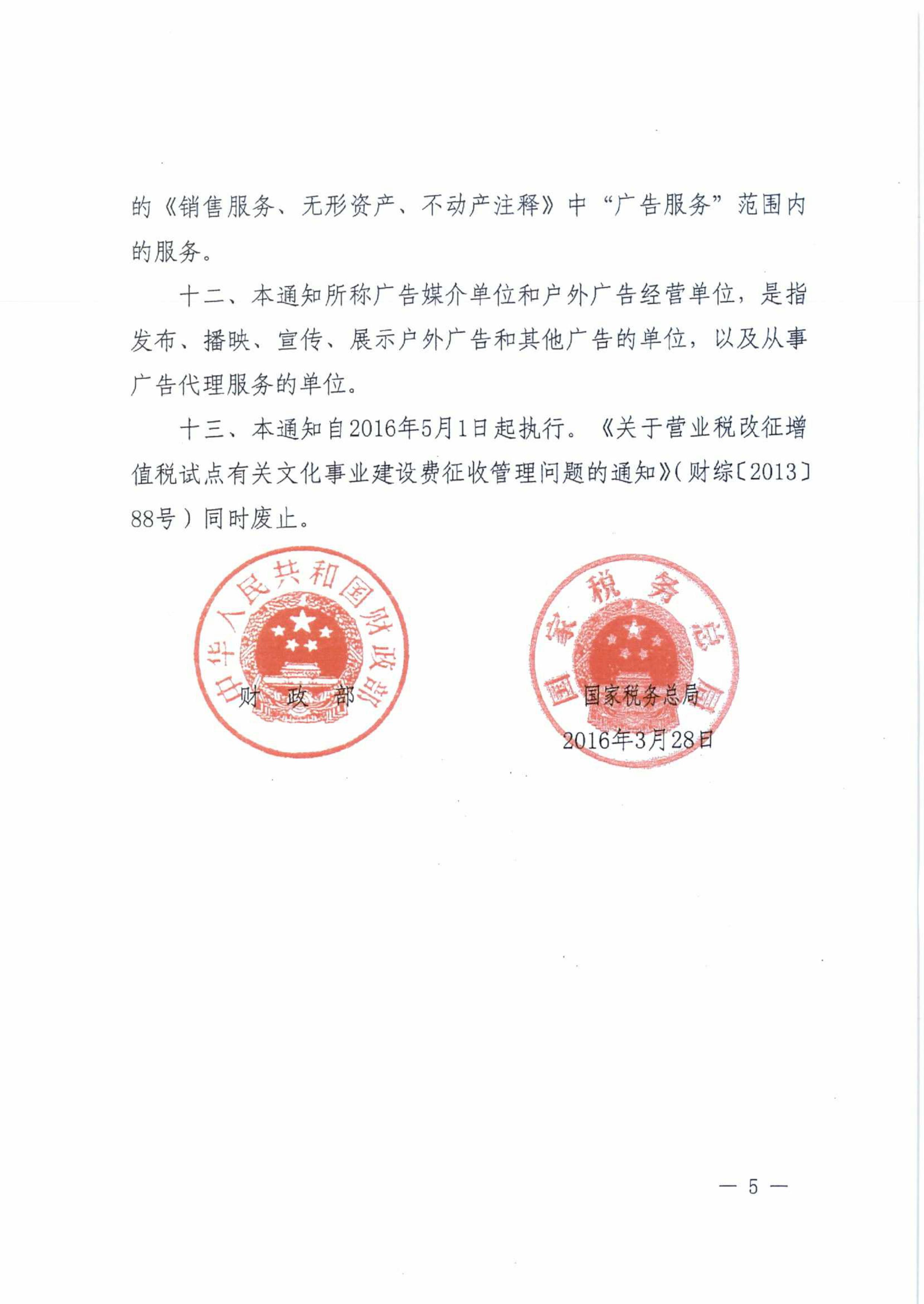 財政部 國家稅務總局關于營業稅改征增值稅試點有關文化事業建設費政策及征收管理問題的通知