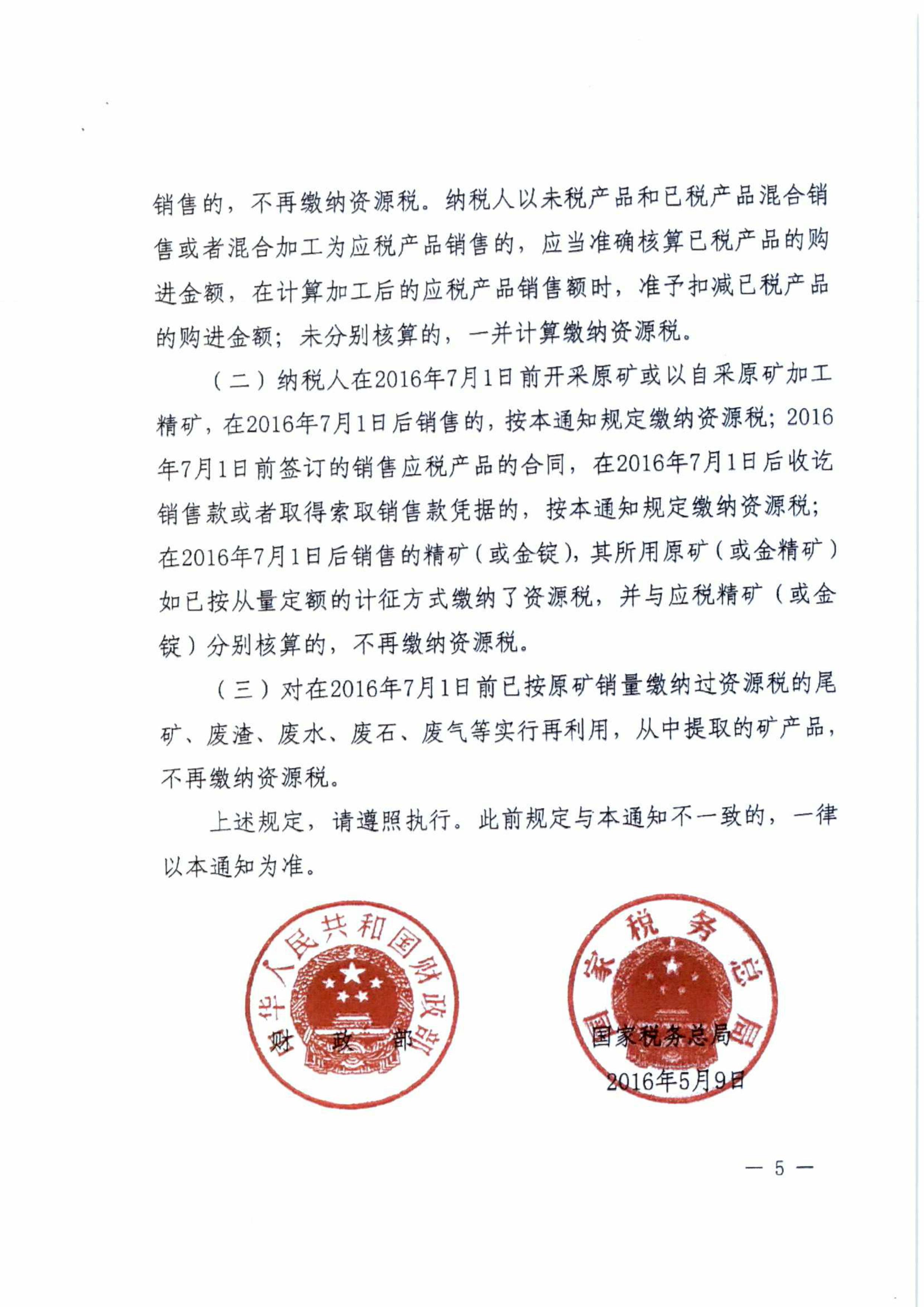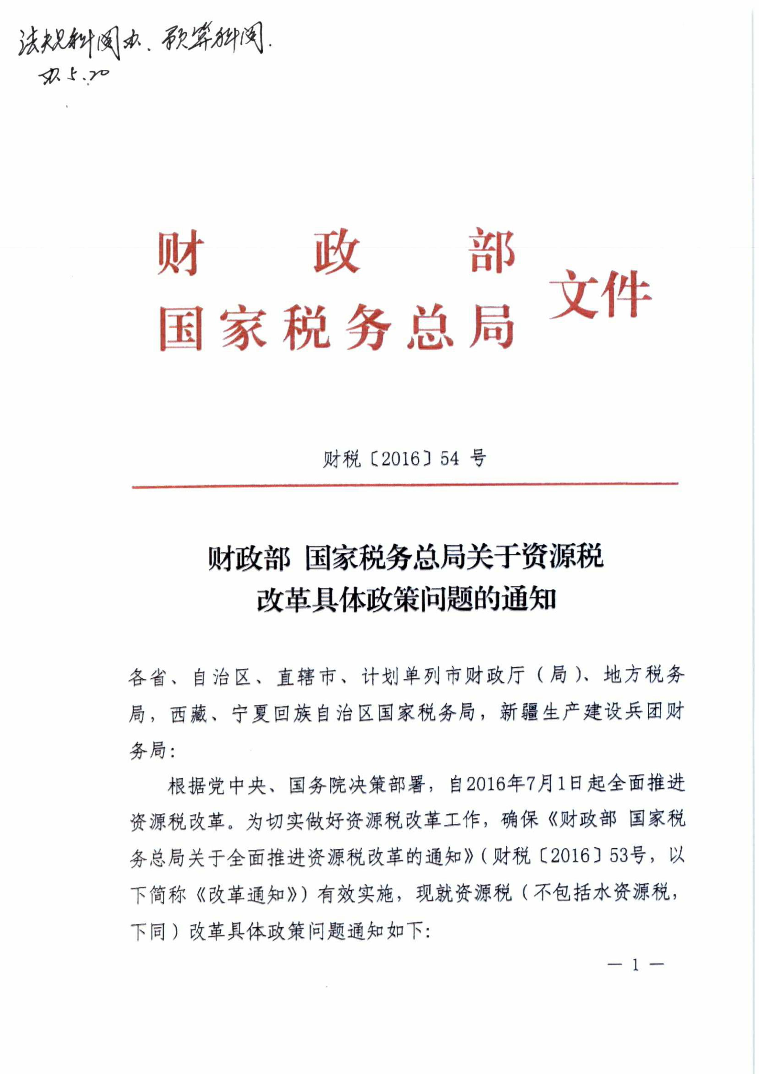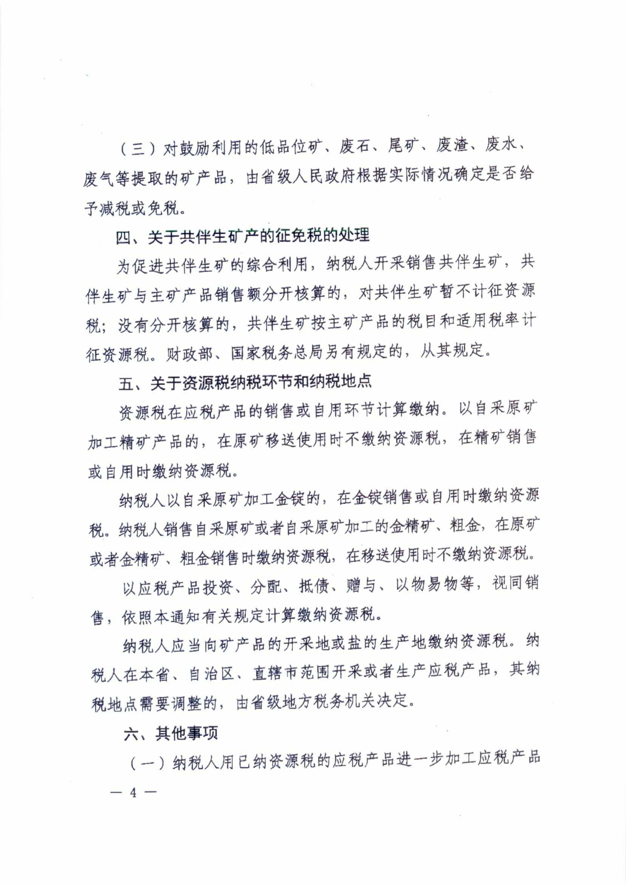 財政部 國家稅務總局關(guān)于資源稅改革具體政策問題的通知