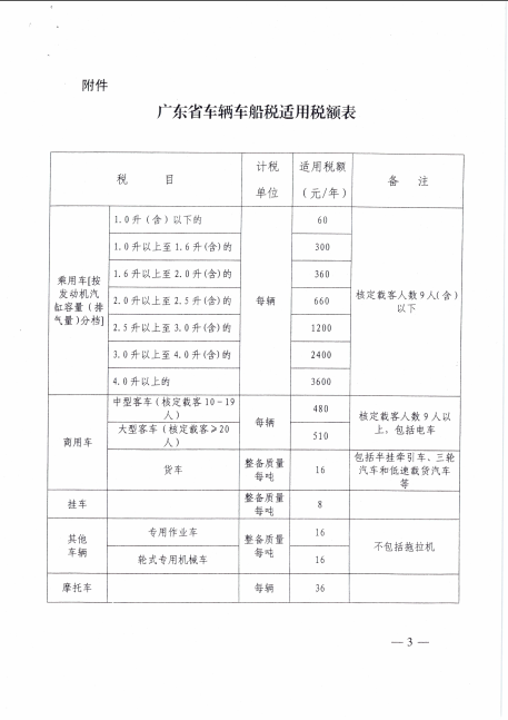廣東省人民政府關于調整車輛車船稅具體適用稅額的通知
