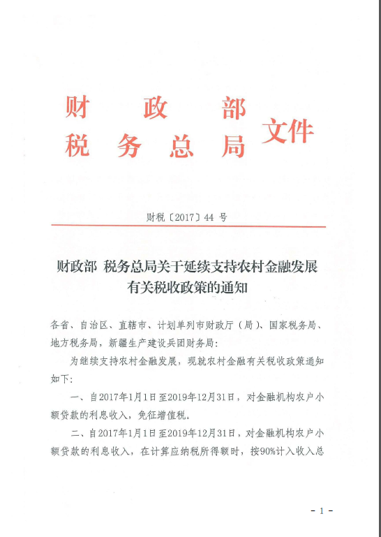 財(cái)政部 稅務(wù)總局 關(guān)于延續(xù)支持農(nóng)村金融發(fā)展有關(guān)稅收政策的通知