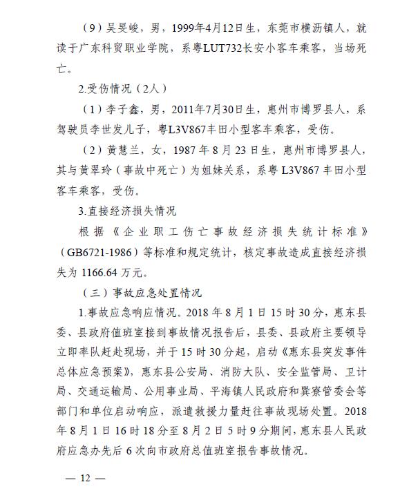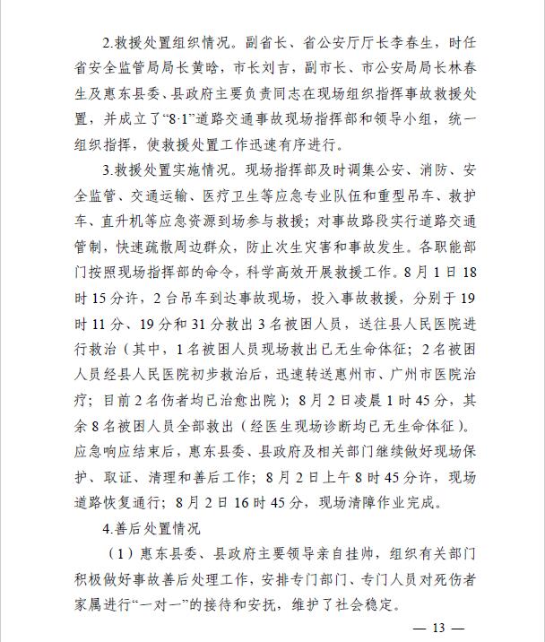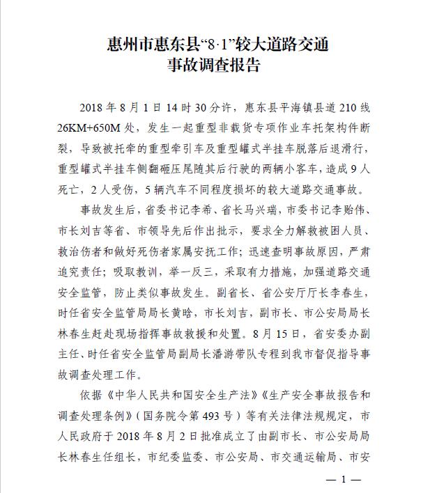 惠州市惠東縣“8·1”較大道路交通事故調(diào)查報(bào)告