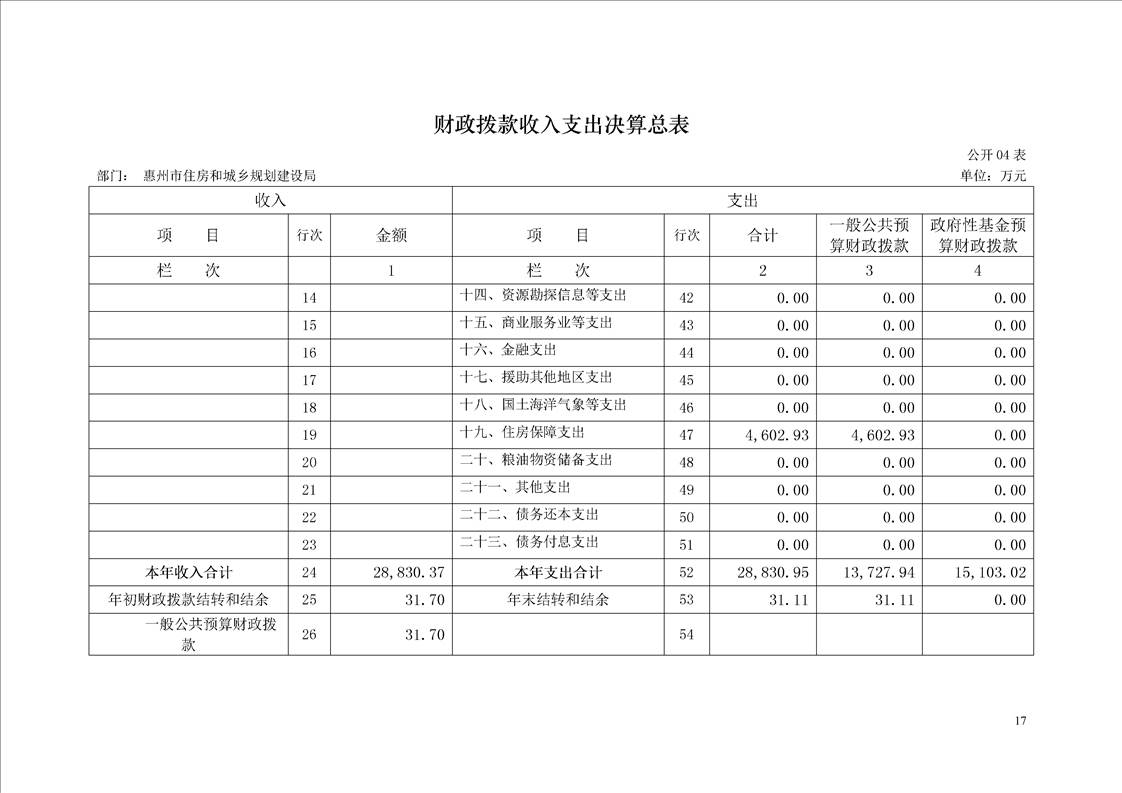 2017年度惠州市住房和城鄉(xiāng)規(guī)劃建設(shè)局部門決算公開情況說明