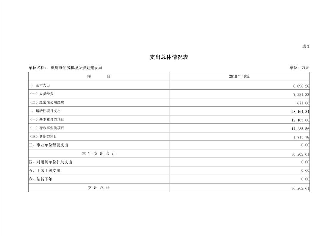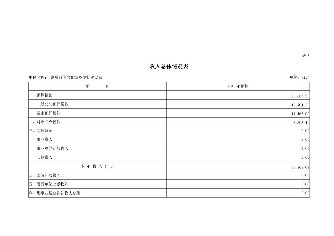 惠州市住房和城鄉規劃建設局2018年度部門預算公開
