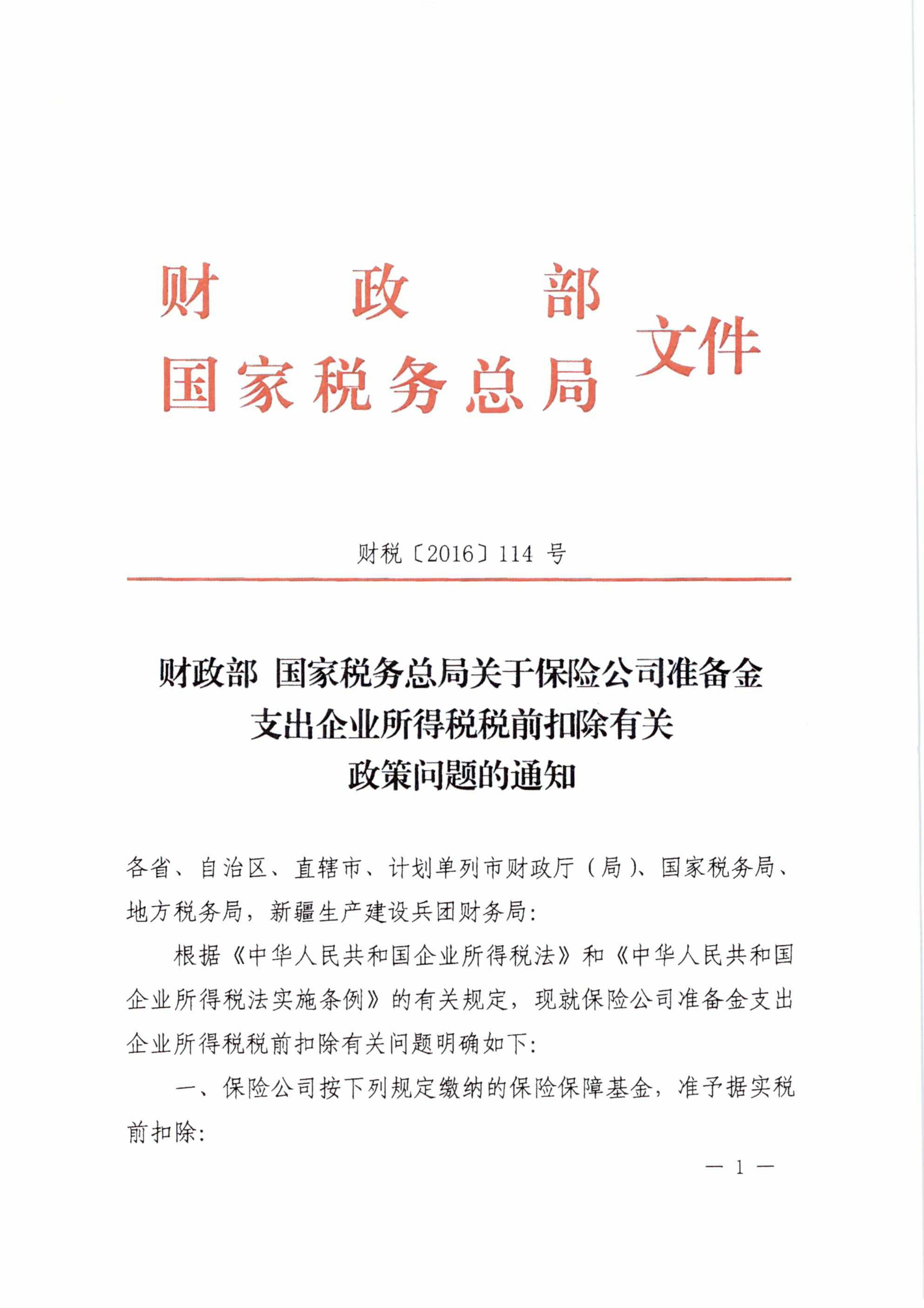 財政部 國家稅務總局關于保險公司準備金支出企業所得稅稅前扣除有關政策問題的通知