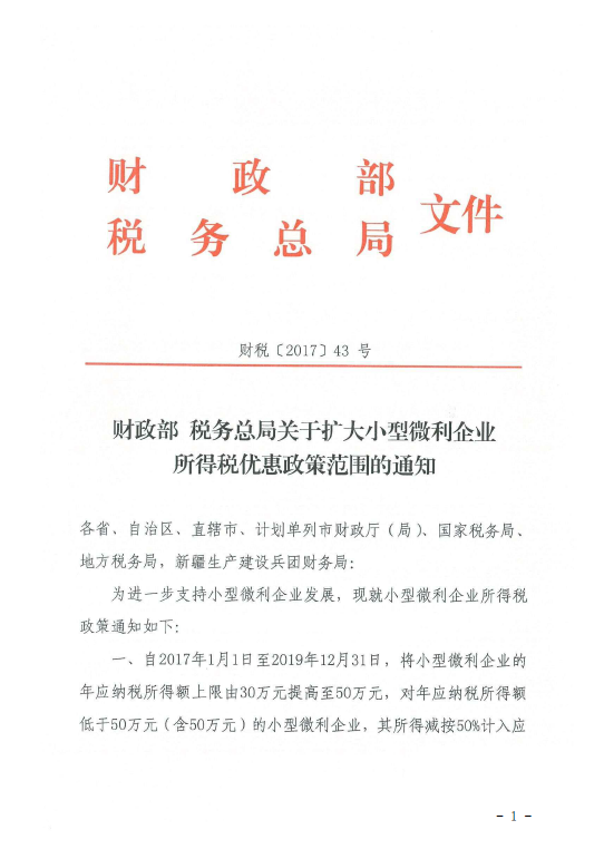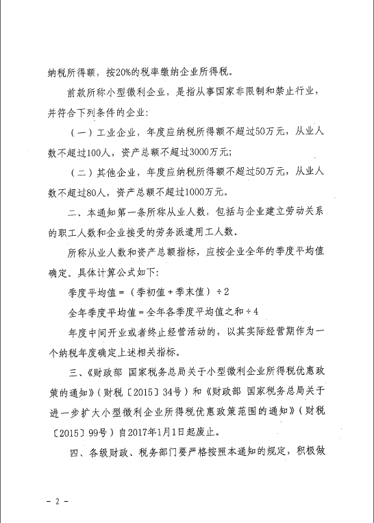 財政部 稅務總局關于擴大小型微利企業所得稅優惠政策范圍的通知