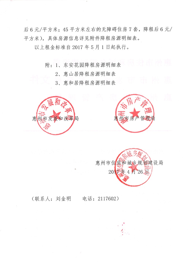 惠州市住房和城鄉規劃建設局、惠州市發展和改革局、惠州市房產管理局關于調整惠城中心部分公租房租金的通告