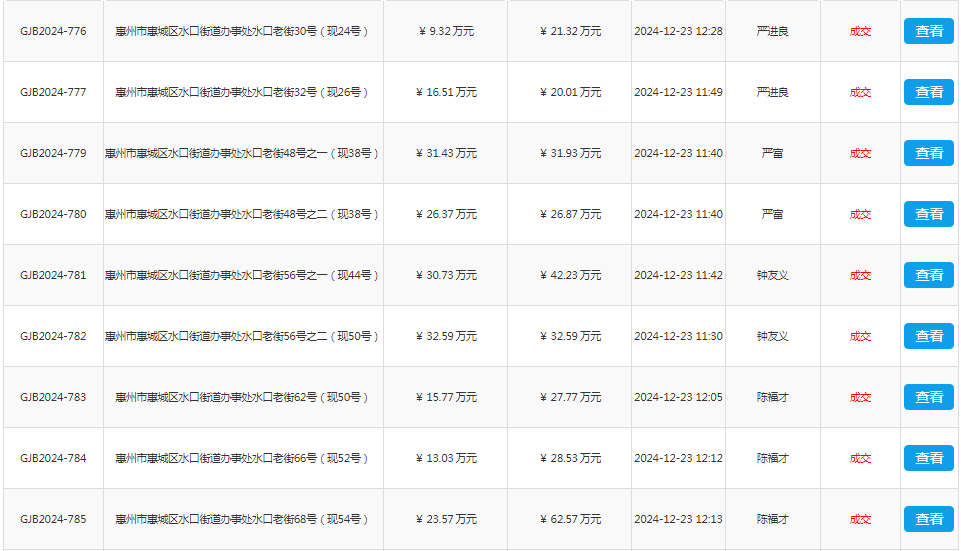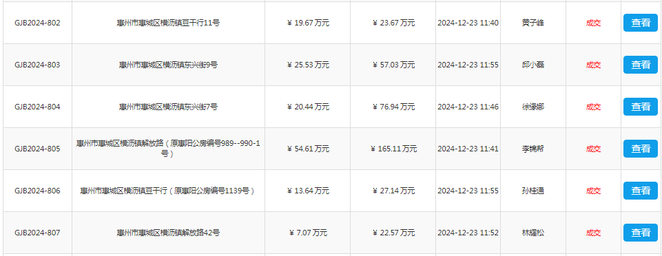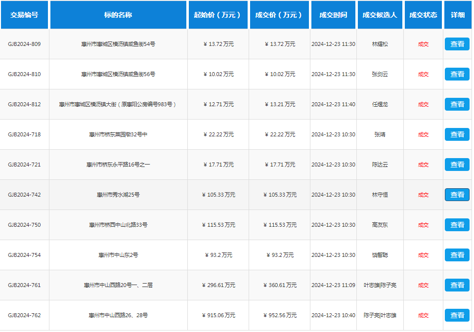 惠州市機關事務管理局672宗不動產轉讓部分成交結果公示