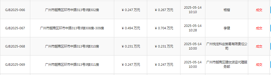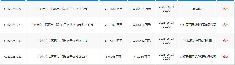廣州市東山區環市中路313號16樓1602房等9個項目 結果公示