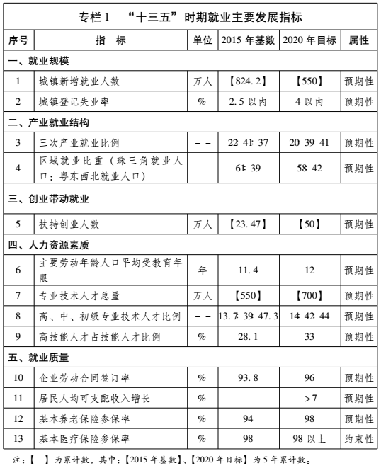 “十三五”時期,全省就業工作要以“四個堅持、三個支撐、兩個走在前列”為引領,深入貫徹落實國家“十三五”促進就業規劃部署要求,全面實施就業優先戰略和人才優先發展戰略,強化政策協同和機制創新,著力穩定和擴大就業規模,不斷提升就業質量,努力將廣東建設成為充分就業先行省、產業就業協同區、創業創新活力區、高素質人力資源集聚區、和諧勞動關系示范區,為穩定全國就業大局作出努力。