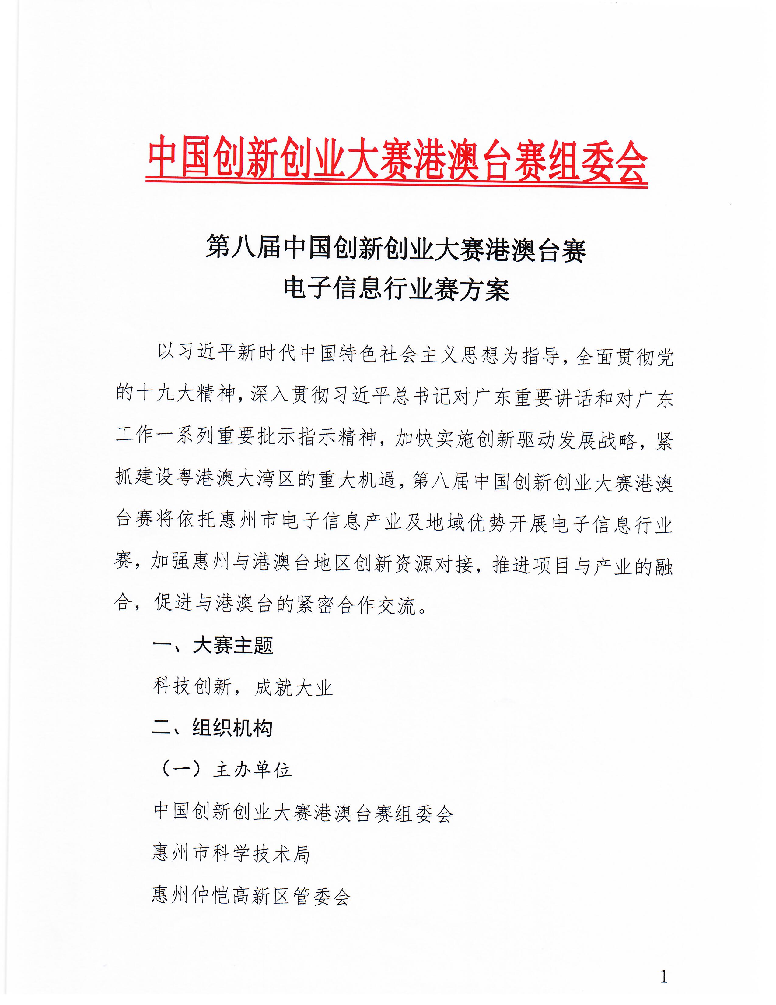 第八屆中國創新創業大賽港澳臺賽電子信息行業賽方案