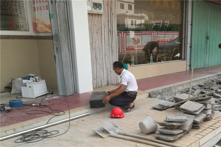 圖5:大亞灣橋東社區綜合服務中心門口工作人員正在進行無障礙通道施工
