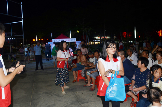 區宣教局結合社區文藝演出活動,在演出前組織文化志愿者發放文物保護知識宣傳資料,并在演出過程中開展知識問答活動,問答內容主要有“哪些文物是國有文物”、“什么是考古發掘”等文物保護相關知識,現場大朋友、小朋友紛紛舉手回答問題、氣氛非常熱烈。