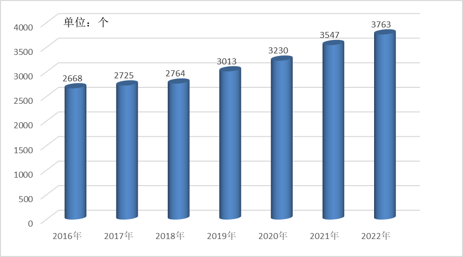 2016-2022年全市醫(yī)療衛(wèi)生機(jī)構(gòu)數(shù)