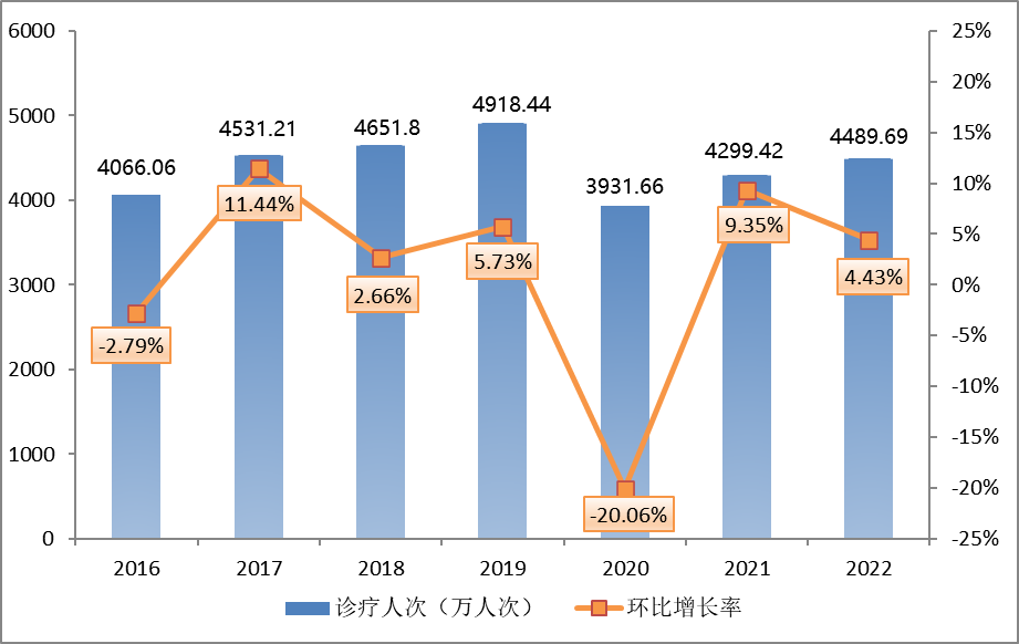 2016-2022年全市醫(yī)療機(jī)構(gòu)門診量