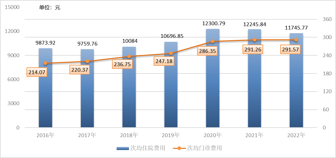 2016-2022年全市醫(yī)院次均門診和住院費(fèi)用