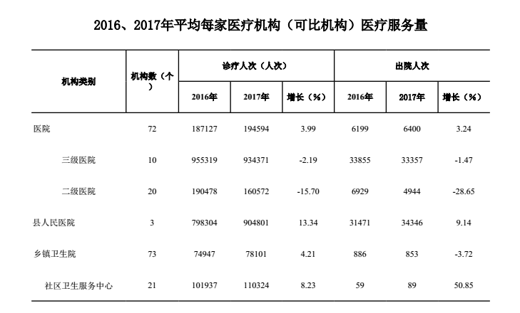 2016、2017年平均每家醫療機構(可比機構)醫療服務