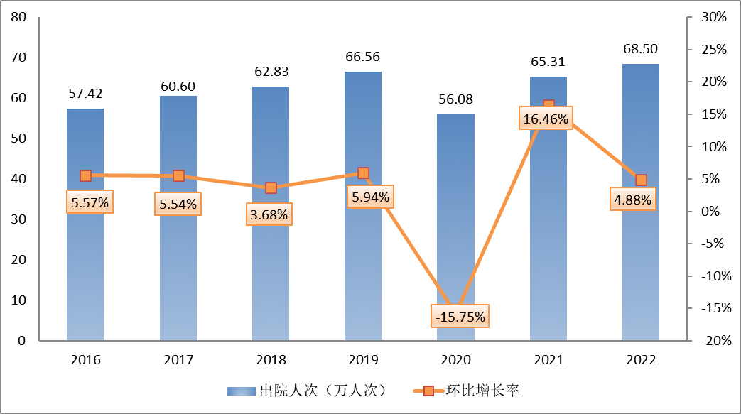 2016-2022年全市醫(yī)療機構(gòu)住院量