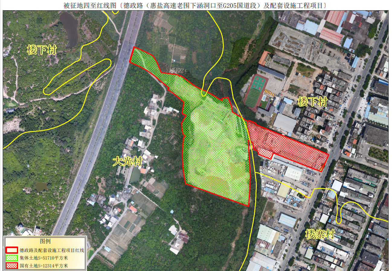 附件:被征地四至紅線圖〔德政路(惠鹽高速老圍下涵洞口至G205國道段)及配套設施工程項目〕