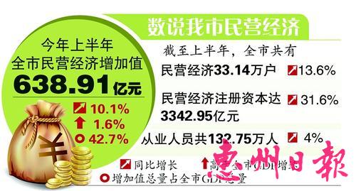 今年上半年,民營經濟實現增加值已超過2010年全年。統計數據顯示,2010年,我市全年民營經濟完成增加值614.2億元,占全市生產總值比重的35.5%;民營經濟從業人員104.3萬人。