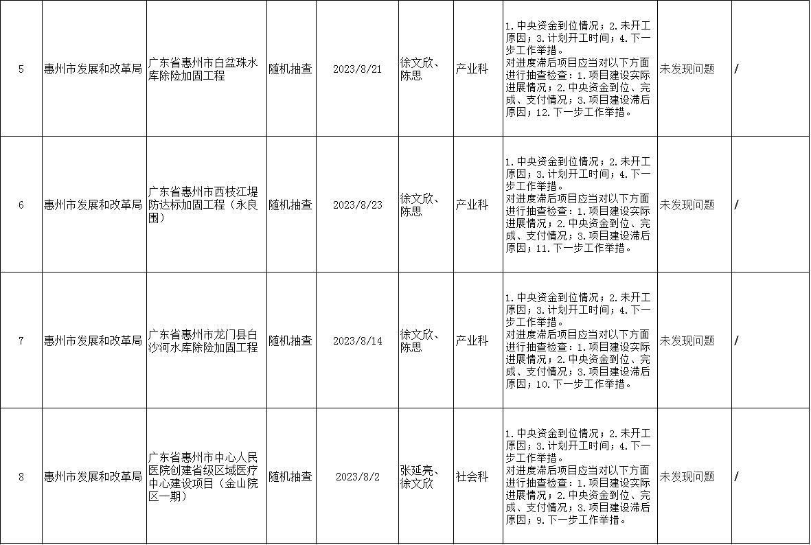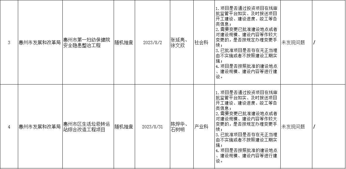 惠州市發(fā)展和改革局2023年“雙隨機、一公開”抽查檢查情況公示